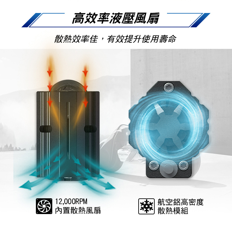 還有IP67的防水防塵規格,獨立的高效率液壓風扇延長產品壽命。最重要更享有業界最長兩年保固,使用更安心。