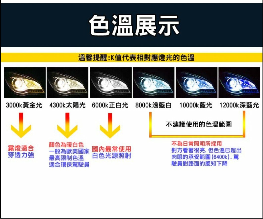 一般來說,高色溫光線的穿透力相對較差,因為白色(高色溫)的光線容易被霧氣給反射,讓前方的視野呈現一片白茫茫,反倒讓前方的可視距離縮短,間接影響行車安全。