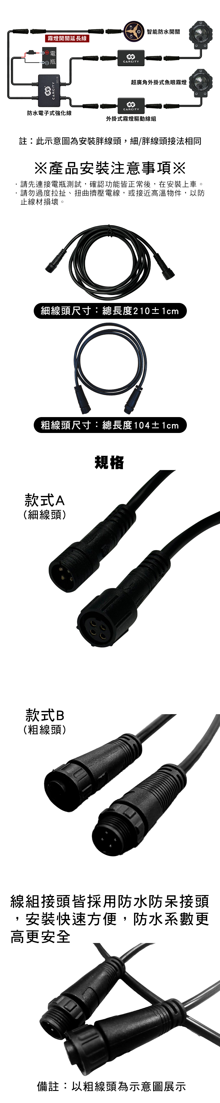 3.0開關延長線組|細/粗防水接頭設計|3.0智能版外掛霧燈專用