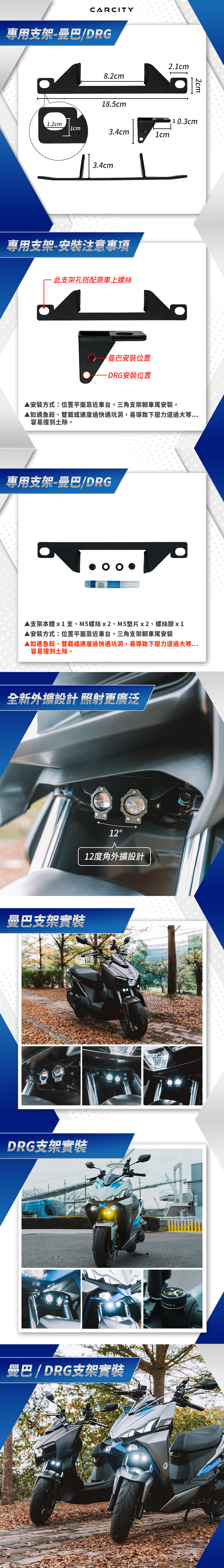 CarCity卡西堤 超廣角外掛式霧燈-曼巴 /DRG二代專用支架 外開設計 霧燈角度更寬廣