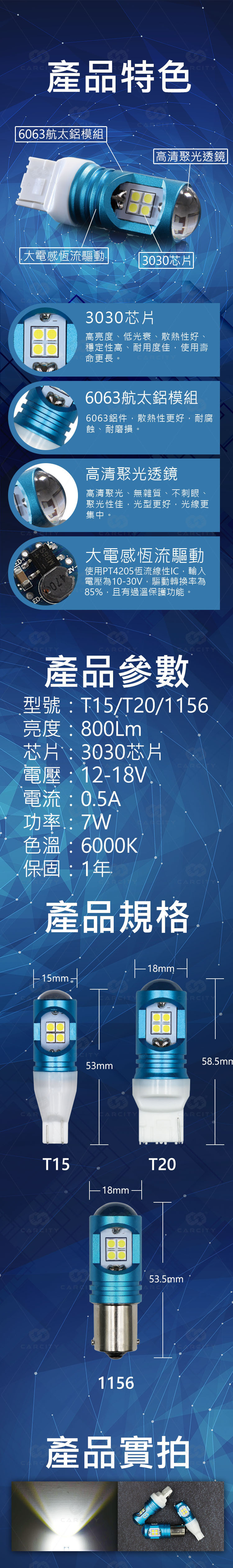 LED倒車燈|一年保固|3030芯片|寬壓恆流驅動|航太鋁散熱|直上型|